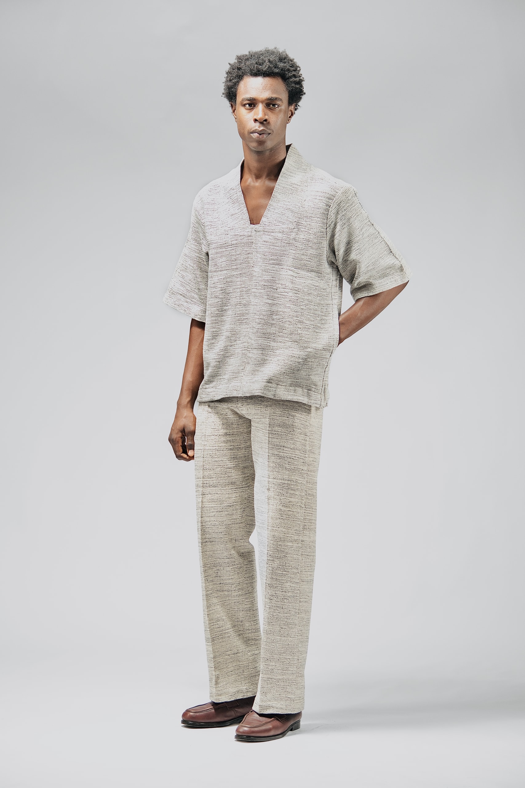 Our Onoa shirt is crafted with care from fabric that is meticulously woven and handmade in Ghana, ensuring authenticity and a connection to rich cultural traditions. We exclusively use organic cotton, offering a blend of comfort and sustainability. The fabric has a medium-weight feel, making it versatile for various occasions while providing durability. For the best results and to maintain the integrity of the fabric, we recommend dry cleaning. Each piece is a testament to quality craftsmanship, designed to be both timeless and environmentally conscious.