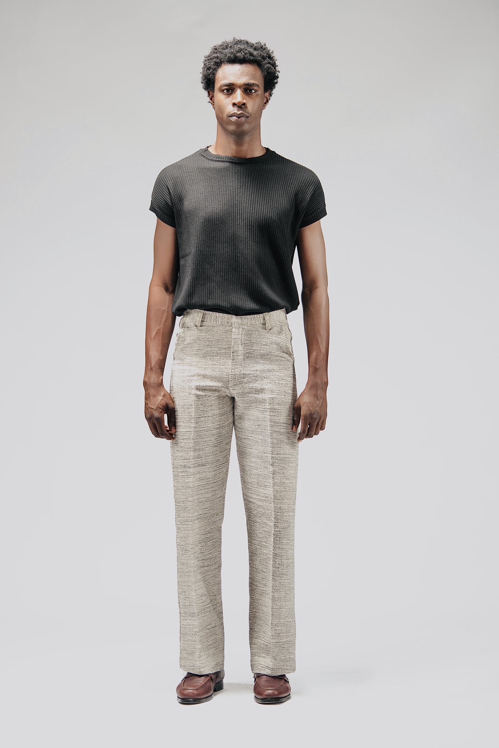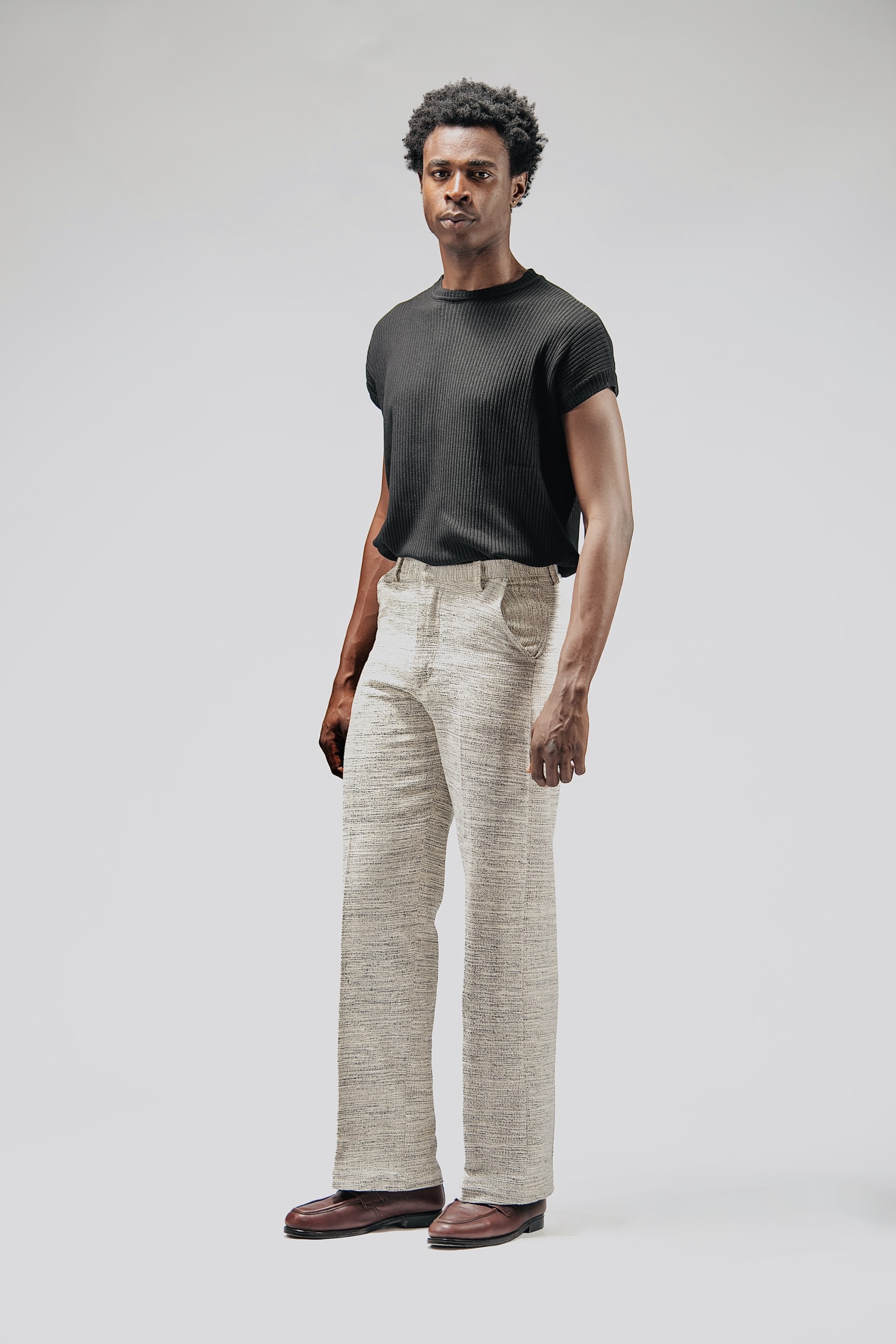 Our Sanbra Pants is crafted with care from fabric that is meticulously woven and handmade in Ghana, ensuring authenticity and a connection to rich cultural traditions. We exclusively use organic cotton, offering a blend of comfort and sustainability. The fabric has a medium-weight feel, making it versatile for various occasions while providing durability. For the best results and to maintain the integrity of the fabric, we recommend dry cleaning. Each piece is a testament to quality craftsmanship, designed to be both timeless and environmentally conscious.