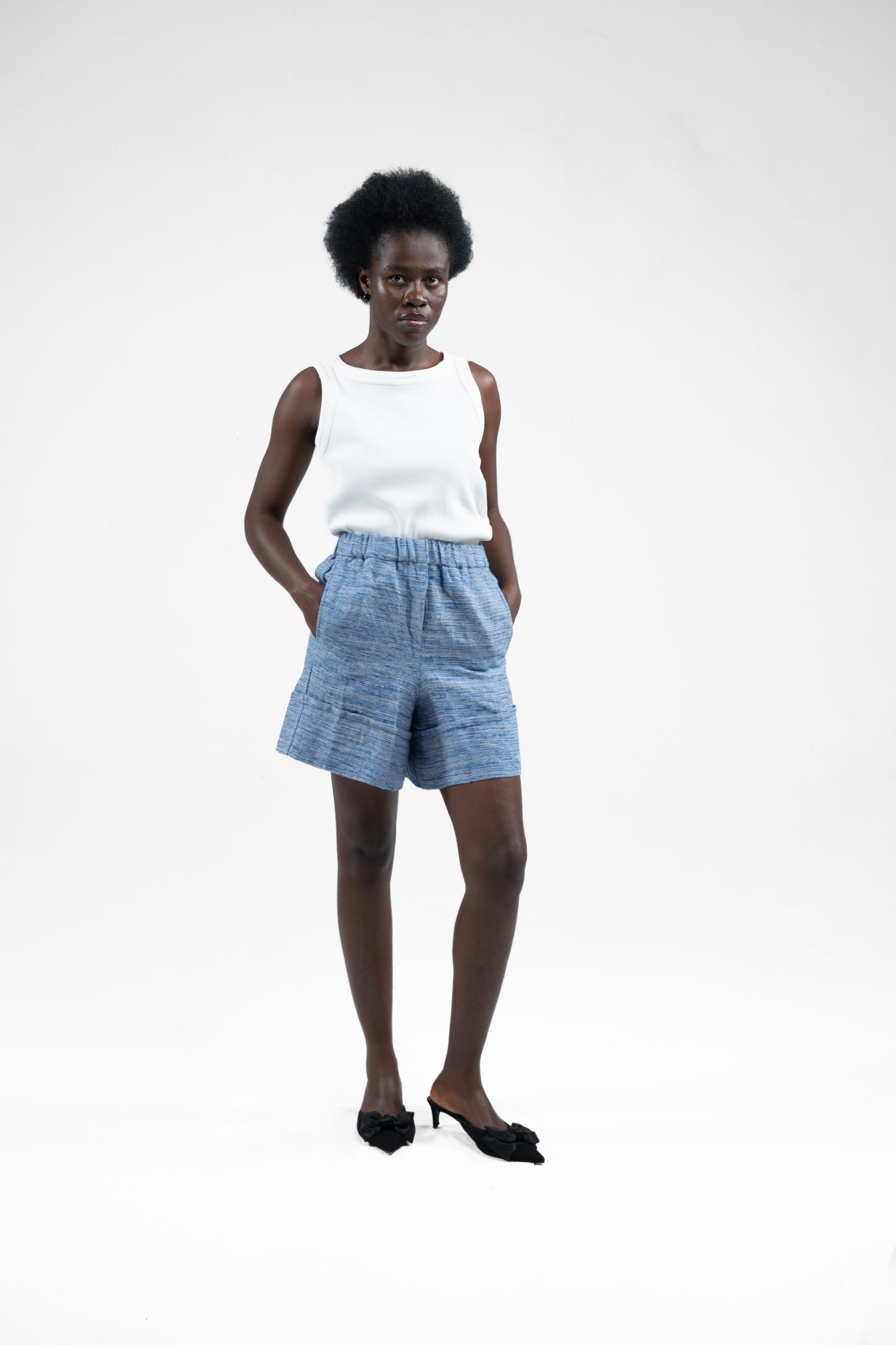 Our Sesa shorts is crafted with care from fabric that is meticulously woven and handmade in Ghana, ensuring authenticity and a connection to rich cultural traditions. We exclusively use organic cotton, offering a blend of comfort and sustainability. The fabric has a medium-weight feel, making it versatile for various occasions while providing durability. For the best results and to maintain the integrity of the fabric, we recommend dry cleaning. Each piece is a testament to quality craftsmanship, designed to be both timeless and environmentally conscious.