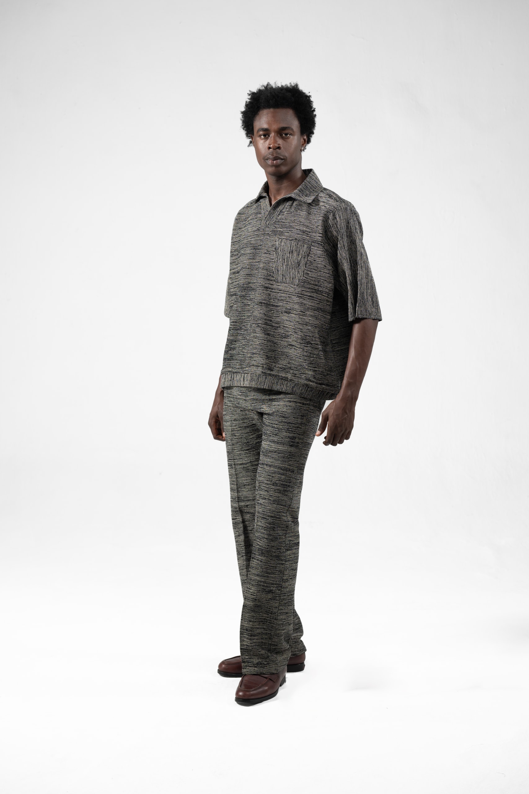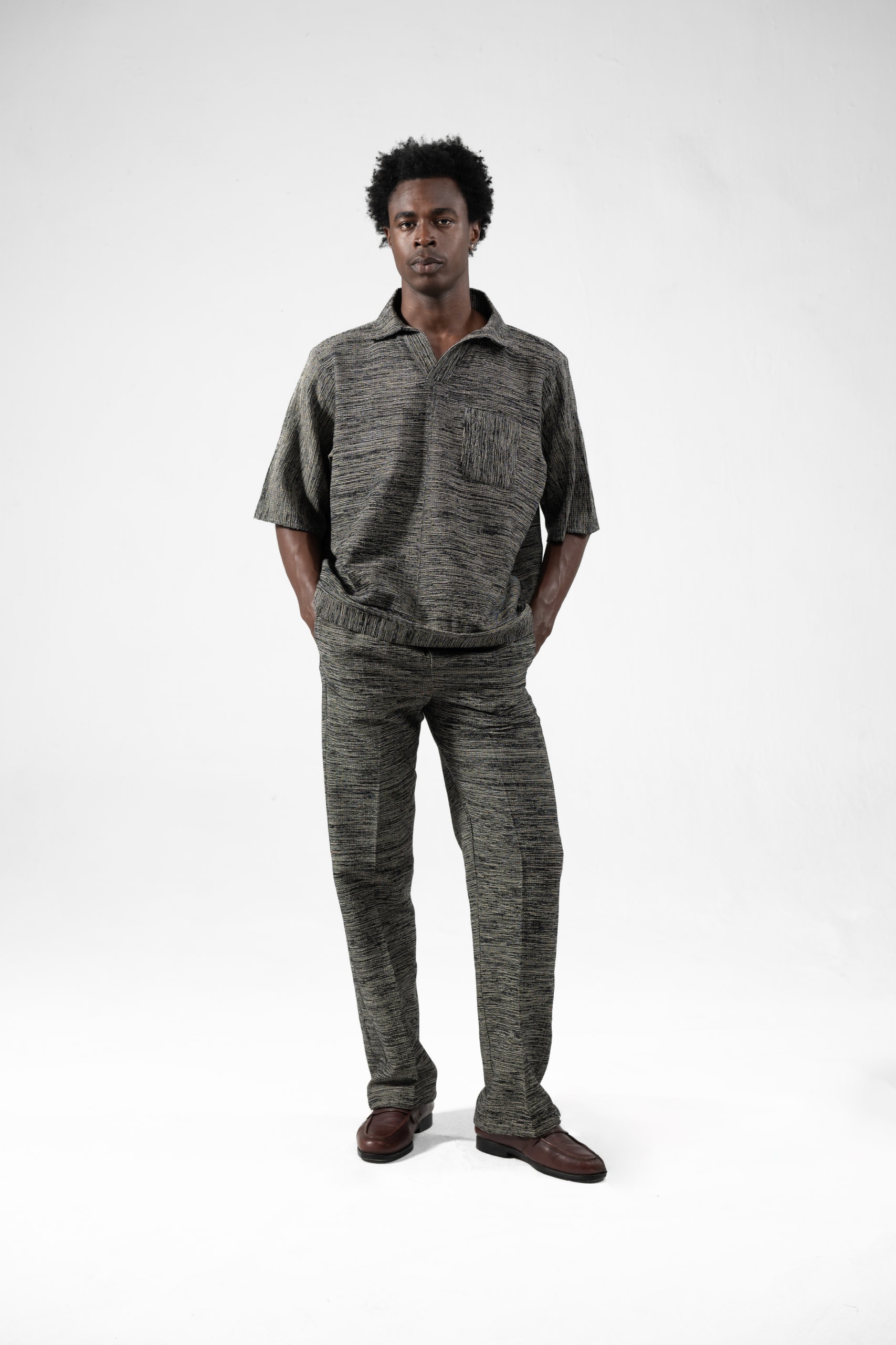 Our Tumi shirt is crafted with care from fabric that is meticulously woven and handmade in Ghana, ensuring authenticity and a connection to rich cultural traditions. We exclusively use organic cotton, offering a blend of comfort and sustainability. The fabric has a medium-weight feel, making it versatile for various occasions while providing durability. For the best results and to maintain the integrity of the fabric, we recommend dry cleaning. Each piece is a testament to quality craftsmanship, designed to be both timeless and environmentally conscious.