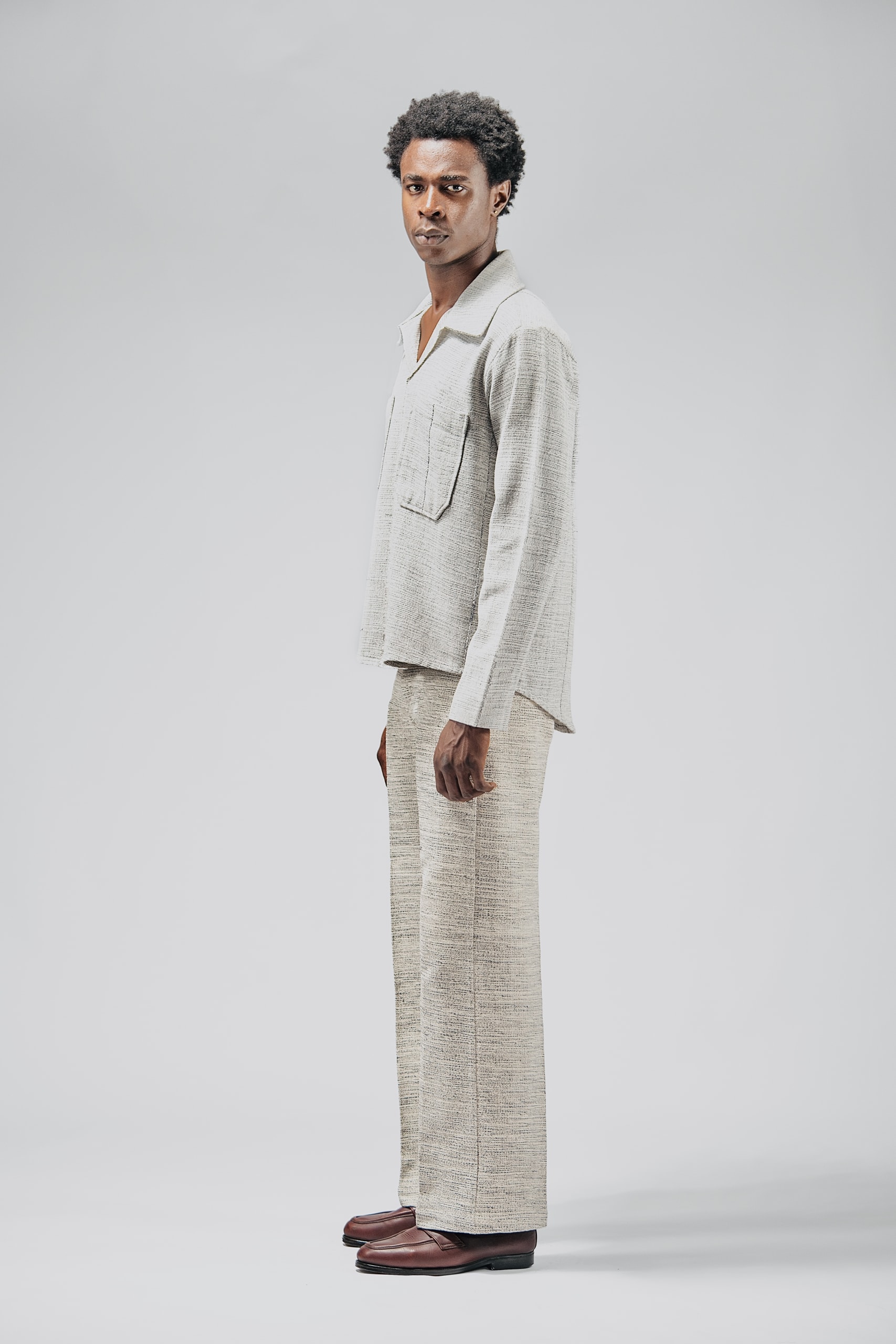 Our Yegya shirt is crafted with care from fabric that is meticulously woven and handmade in Ghana, ensuring authenticity and a connection to rich cultural traditions. We exclusively use organic cotton, offering a blend of comfort and sustainability. The fabric has a medium-weight feel, making it versatile for various occasions while providing durability. For the best results and to maintain the integrity of the fabric, we recommend dry cleaning. Each piece is a testament to quality craftsmanship, designed to be both timeless and environmentally conscious.